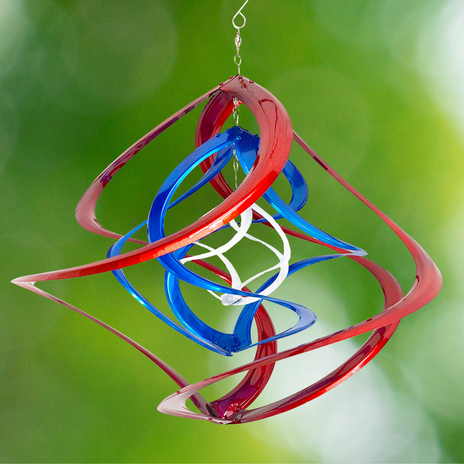 Our Red, White, and Blue Triple Helix Cosmix Garden Spinner is a patriotic statement piece for any outdoor space. Featuring triple helix and crystal accent at its center, this is one of the most intricate designs in our Cosmix offerings! This multi-dimensional design is a dynamic and modern take on the classic garden spinner.