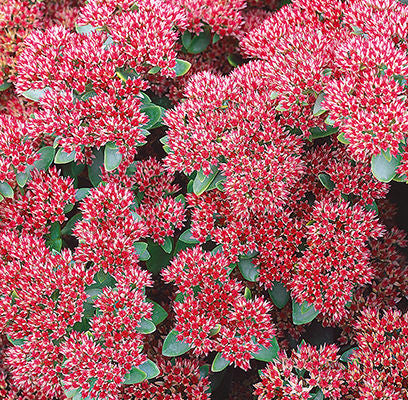 Tall growing sedum with gray-green foliage. Flowers are large plateheads of pink from late summer to frost. Tolerant of dry soil. Drought tolerant plant. Excellent winter interest.