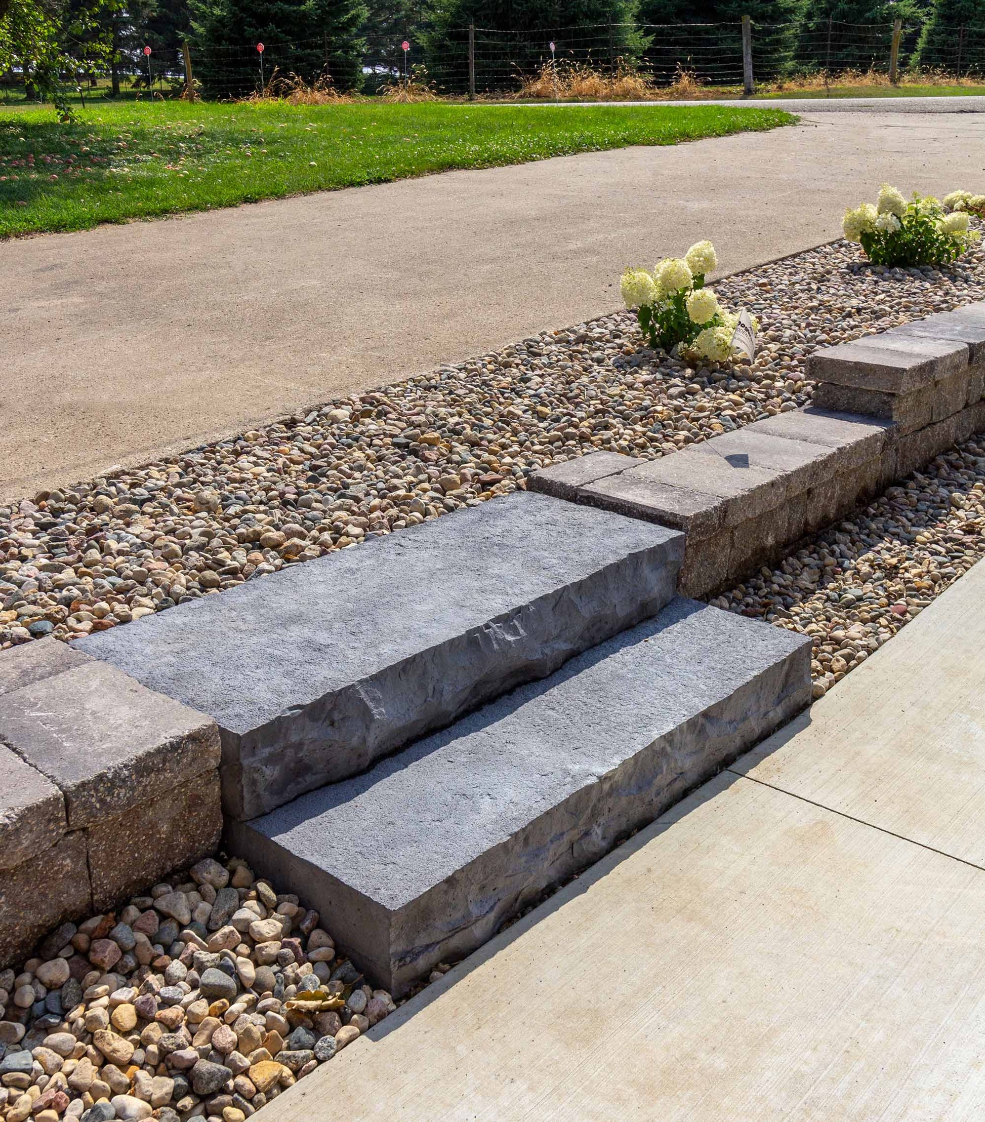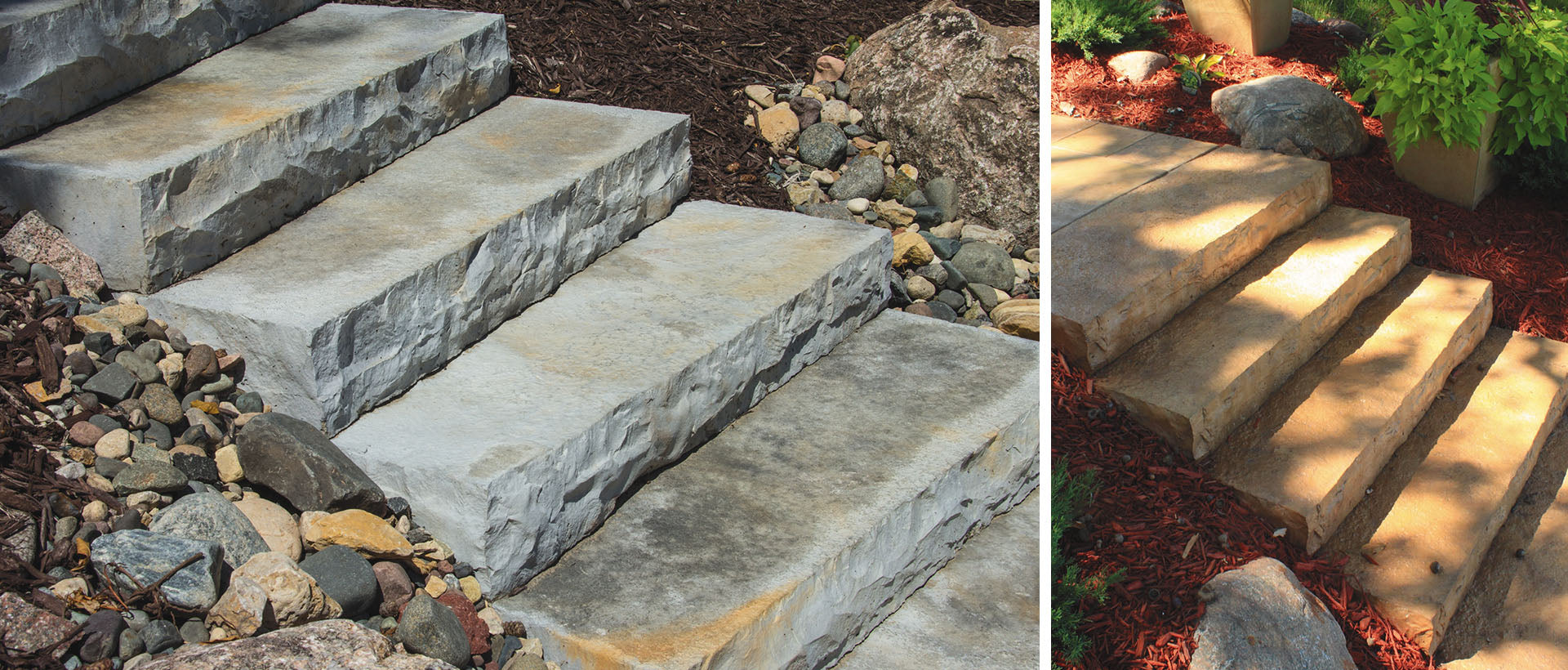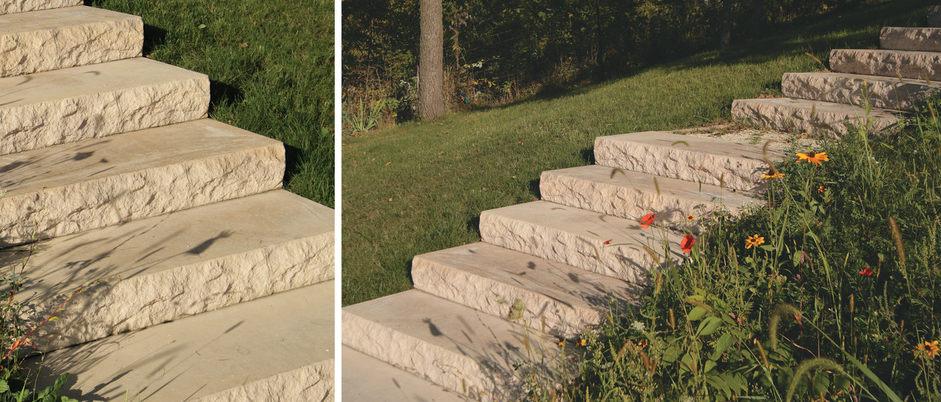 Chiseled Steps by Silver Creek Stoneworks allow you to finish your landscape with the classic look of heavy, hand-chiseled, natural limestone steps. Chiseled Steps are cast from multiple molds for a completely authentic look. They are available in 2 different versions.