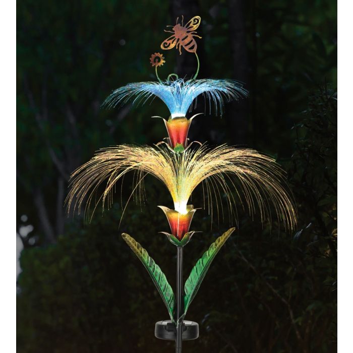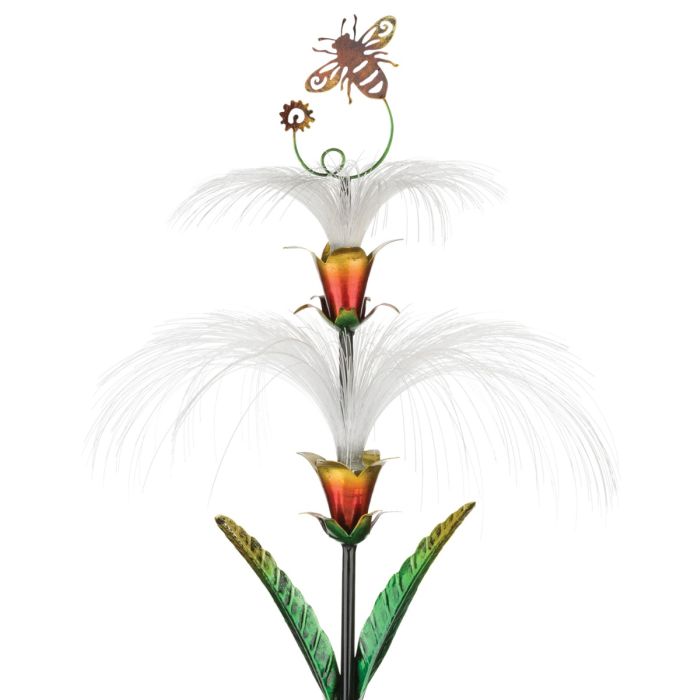 This fiber optic fountain is reminiscent of an eye catching water fountain, as the color changing lights illuminate the tips of the optic fibers. The filaments dance in the wind with the slightest breeze.