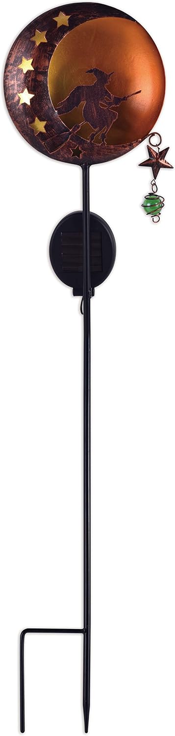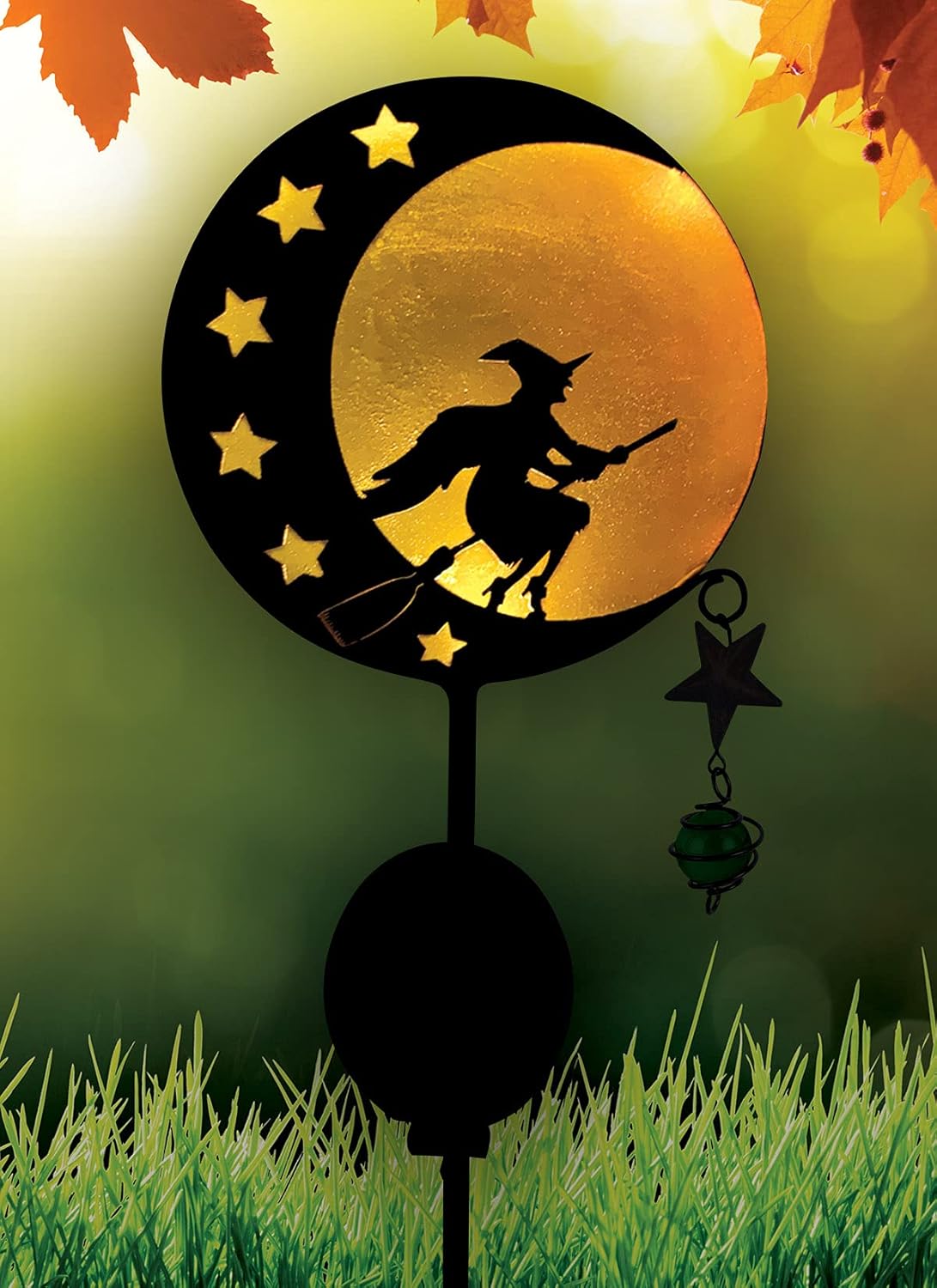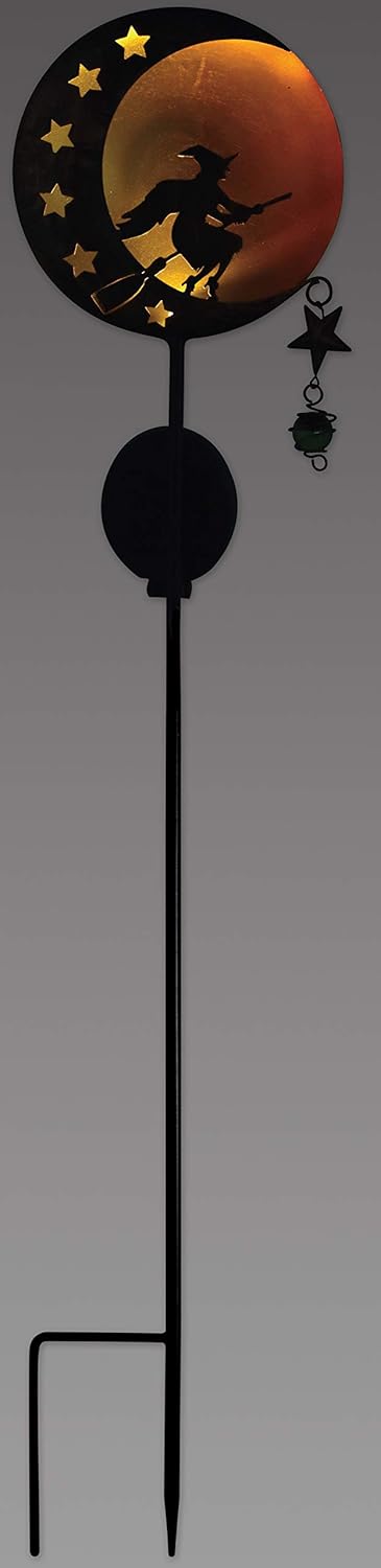 - HALLOWEEN GARDEN ART: decorative metal garden stake with colored glass feature that lights up at night