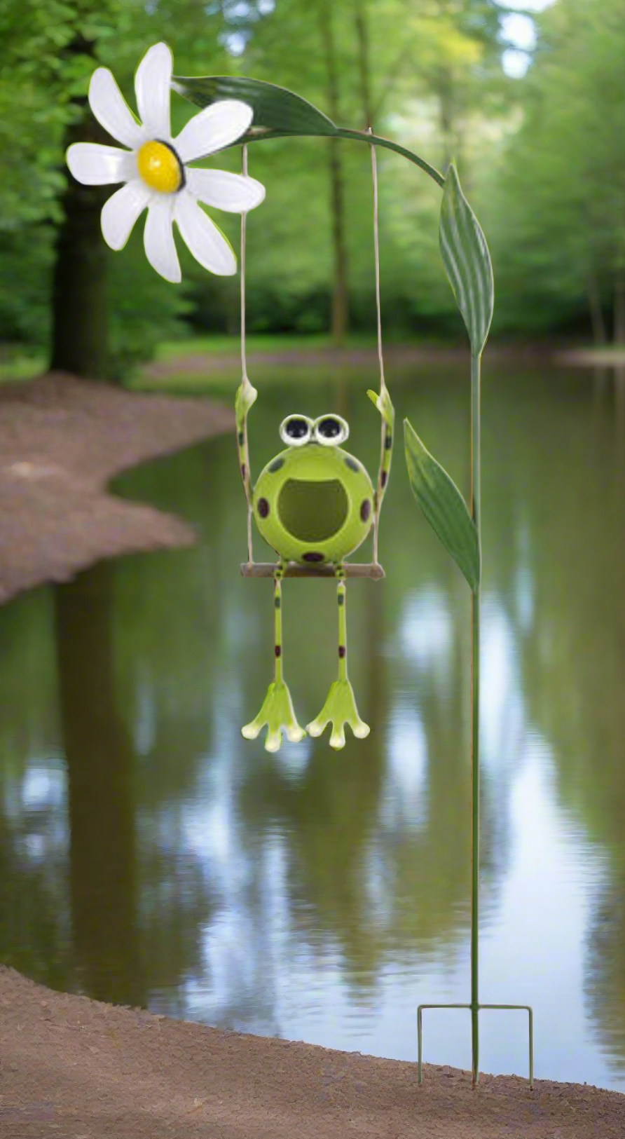 - FRIENDLY FROGGY COLLECTION: Bright and cheery green frog hangs happily from a white daisy