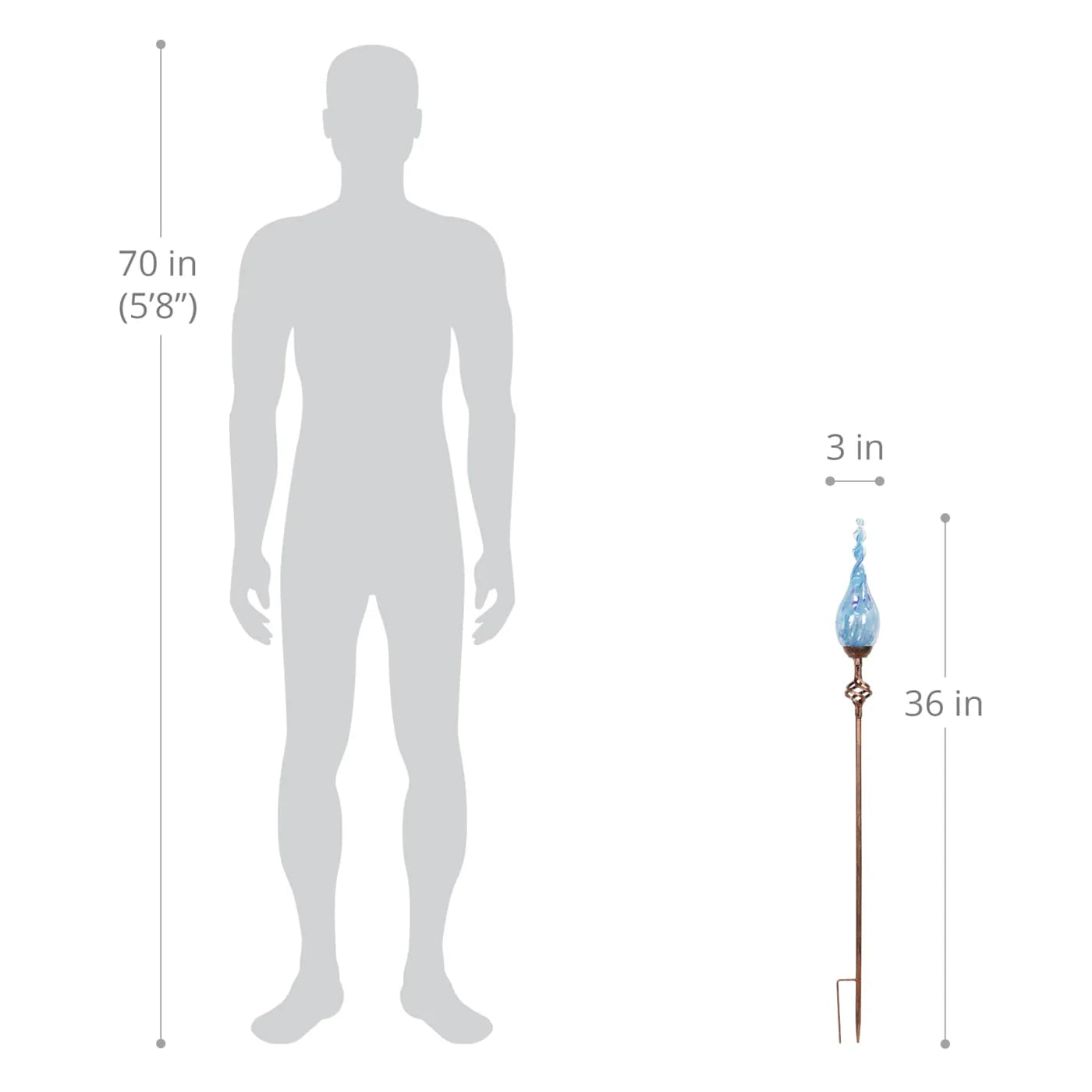 Add a touch of color and light to your garden with an elegant solar pearlized glass flame sculpture in light blue. A Solar powered LED will automatically illuminate the glass every evening adding a beautiful glow to your garden. A perfect addition to your landscape! Hand-blown glass flame sculptures are one-of-a-kind and present with slight color variations. This cool flame art glass statue makes the best gift for the holiday and present for your loved ones!