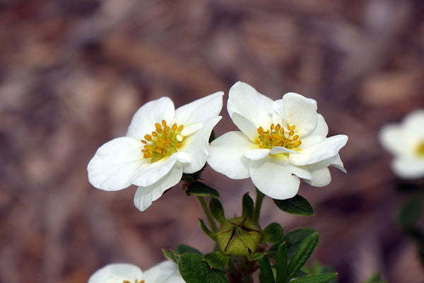 Add a pop of white to the landscape with this double flowering potentilla. Bright white flowers adorn this rounded shrub throughout the entire summer. Dark green foliage contrasts beautifully with the flowers. Introduced by Bailey Nurseries, Inc.