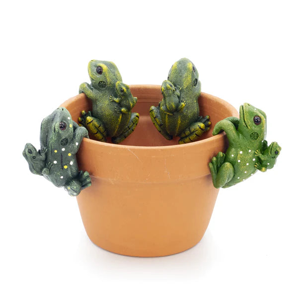 3" piggyback frogs designed to hang on pots or small planter boxes and add personality to your potted plants. Listing is for one pothanger.