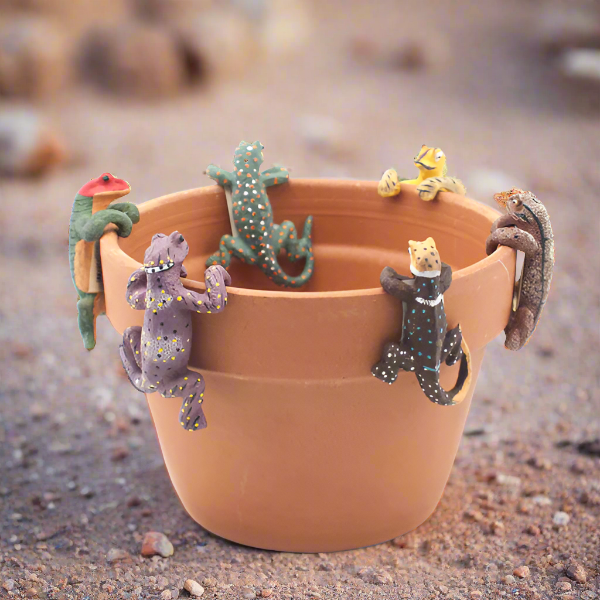 3" geckos designed to hang on pots or small planter boxes and add personality to your potted plants. Listing is for one pothanger.