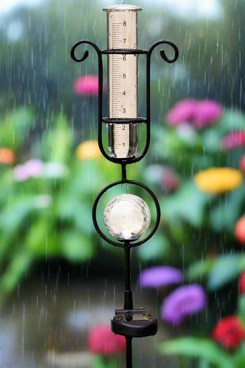 The unique design of this solar garden stake is a perfect blend of beauty and functionality. Display in your garden or yard to add a touch elegance to your outdoor decor. Makes a great gift for a loved one. Measuring 45 inches tall, the rain gauge tube can measure up to 7 inches of rain. The stable h-stake design allows for easy insertion and display in your outdoor area.