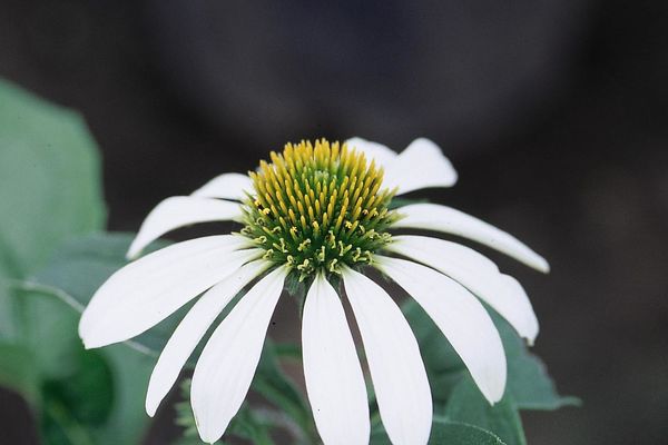 Flowers have a greenish central disk surrounded with white petals appearing in mid-summer and are useful as a cut flower. Tolerates poor soil. Full sun to partial shade.